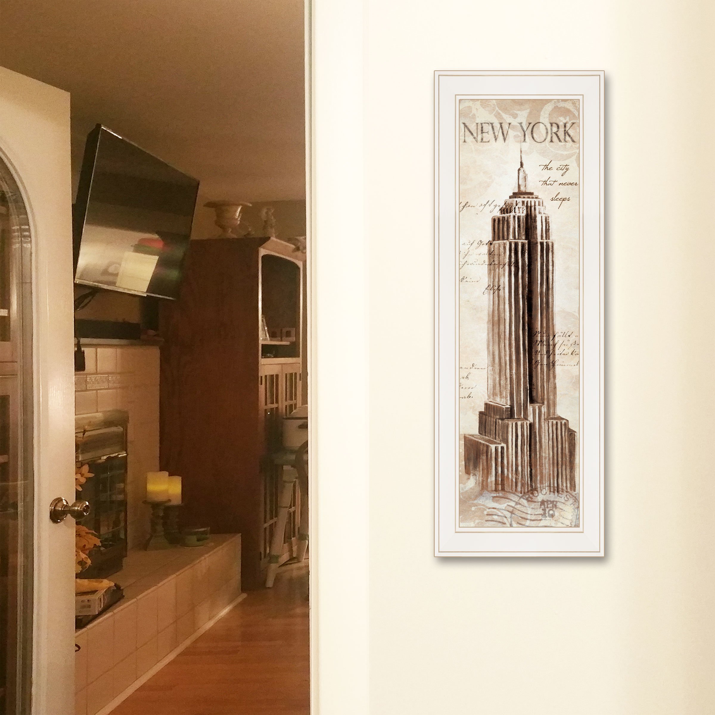 "New York Panel" known for The City That Never Sleeps by artist Cloverfield & Co. This decorative white framed 8"x23" sketches of a New York will be the delight any traveler. Prints are UV coated (glass is not needed) and arrives ready to hang.•TEXTURED ARTWORK with a 'rolled on' acid-free acrylic coating to create a canvas painting effect.•UV PROTECTANT COATING protects artwork from fading. No glass is necessary.• MOULDING adds natural beauty to the framed art. Frame is keyholed for the easy hanging.•THIS FINE HOME DECOR piece made in the USA by Woman Owned Business (WBE) is a perfect gift for a friend or relative.